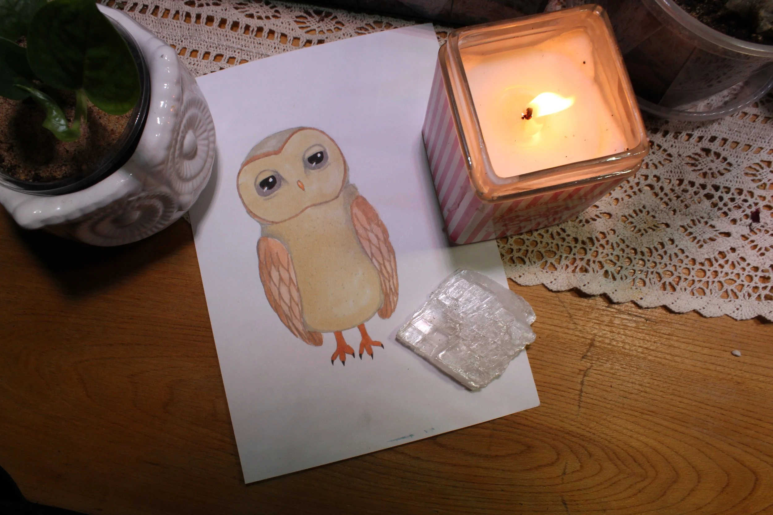 It’s a mix of an owl (symbol of wisdom) and intuitive (trusting instinct). It reflects how I create, with meaning and intention.